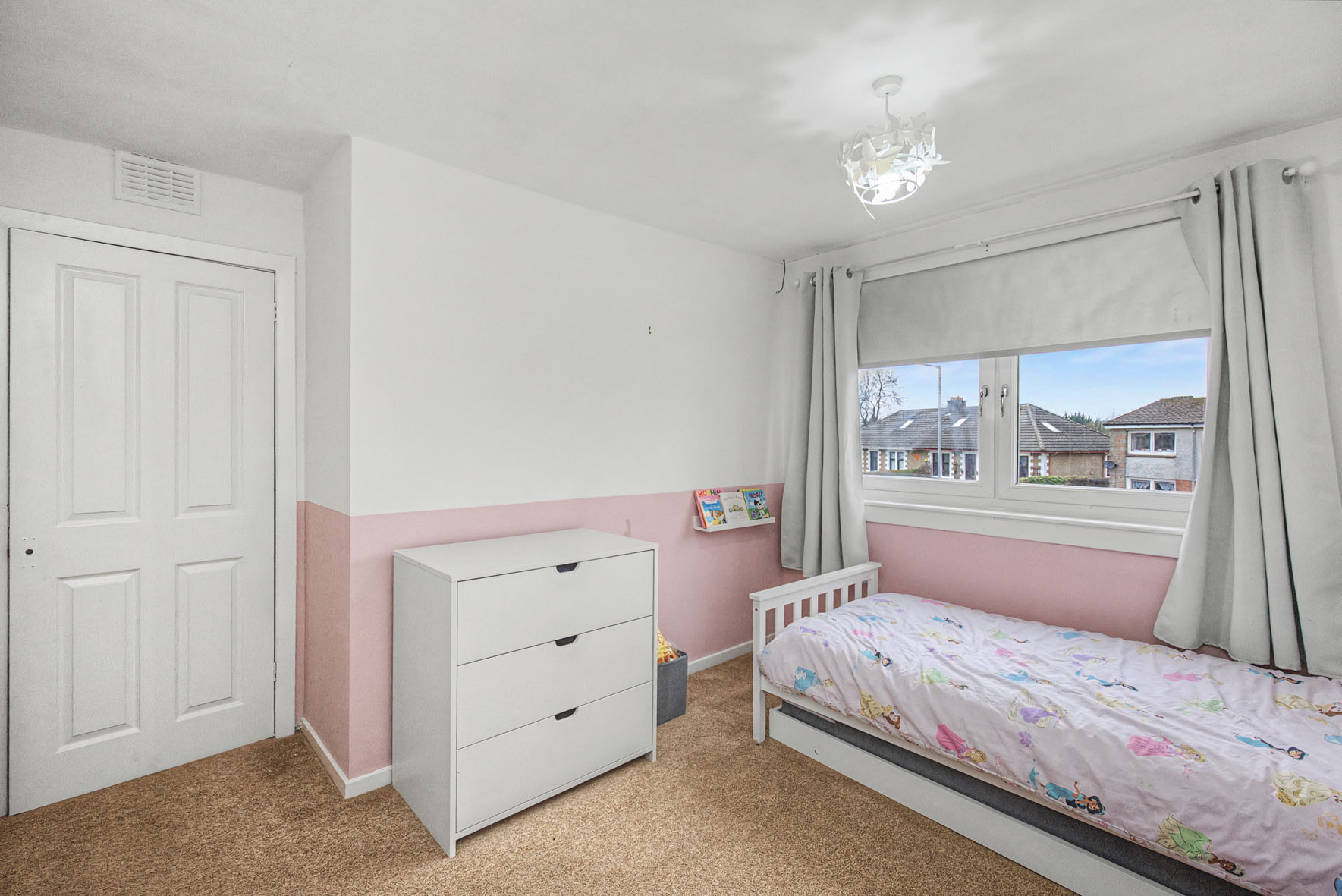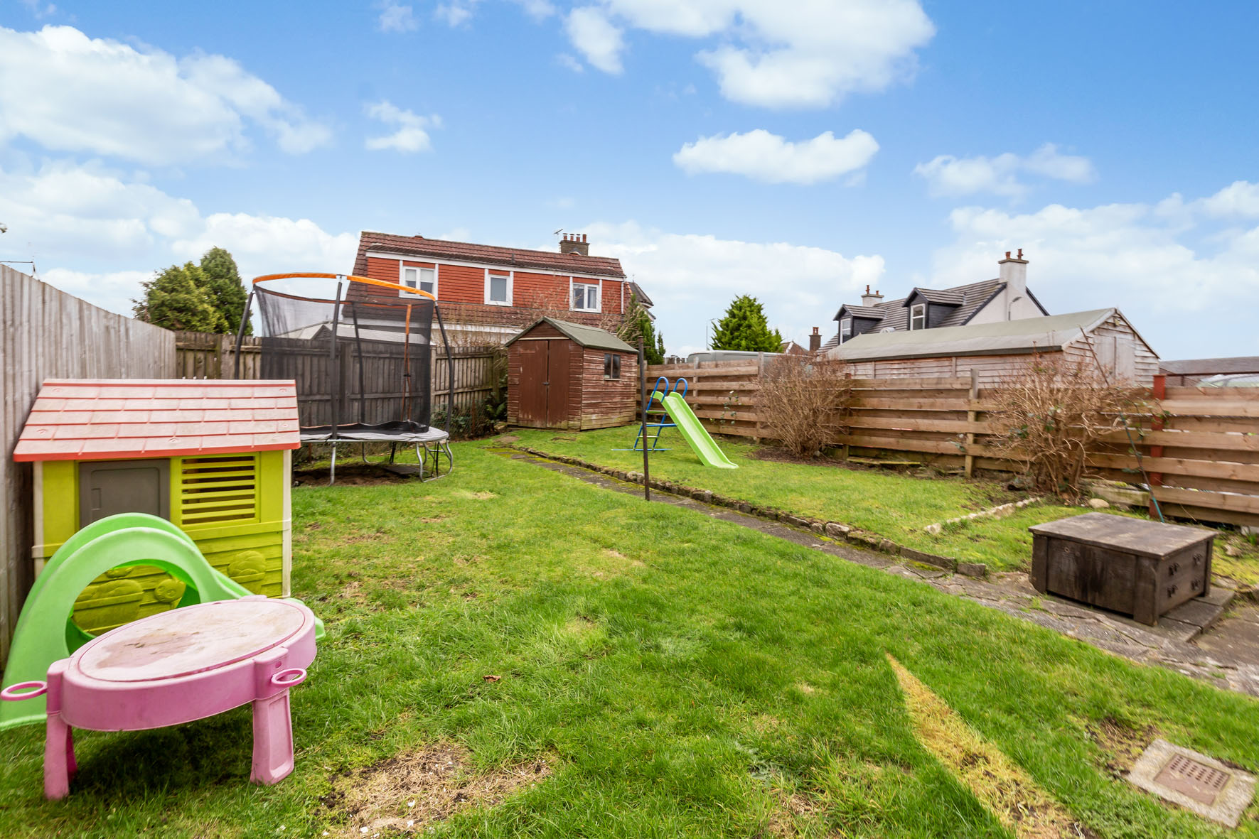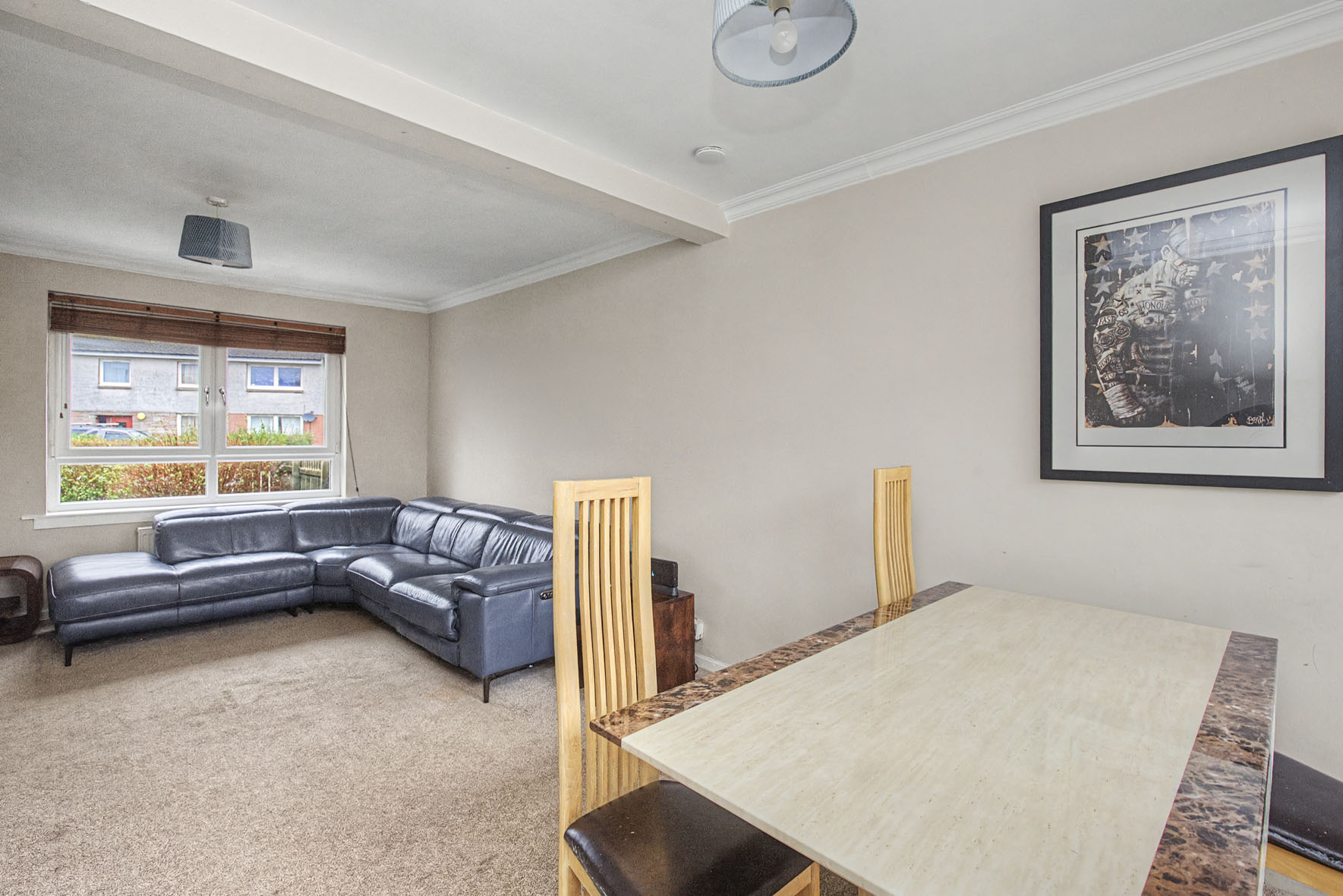 This three-bedroom semi-detached house enjoys a convenient setting in the historic riverside town of Dumbarton, within easy walking distance of schools, central shops, and the train station, which provides swift 30-minute connections to Glasgow. The nearby motorway network further enhances commuting, and scenic open spaces are close at hand for time outdoors.
