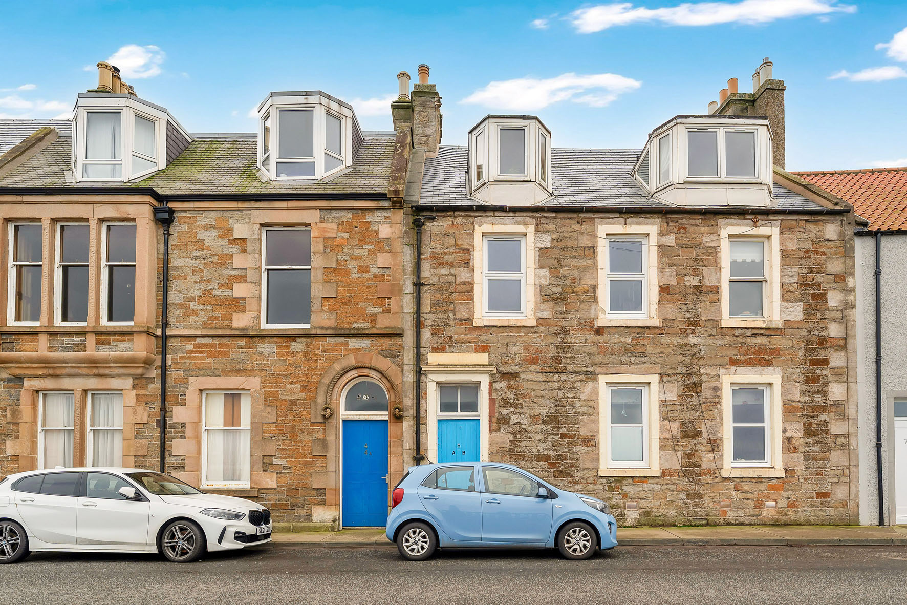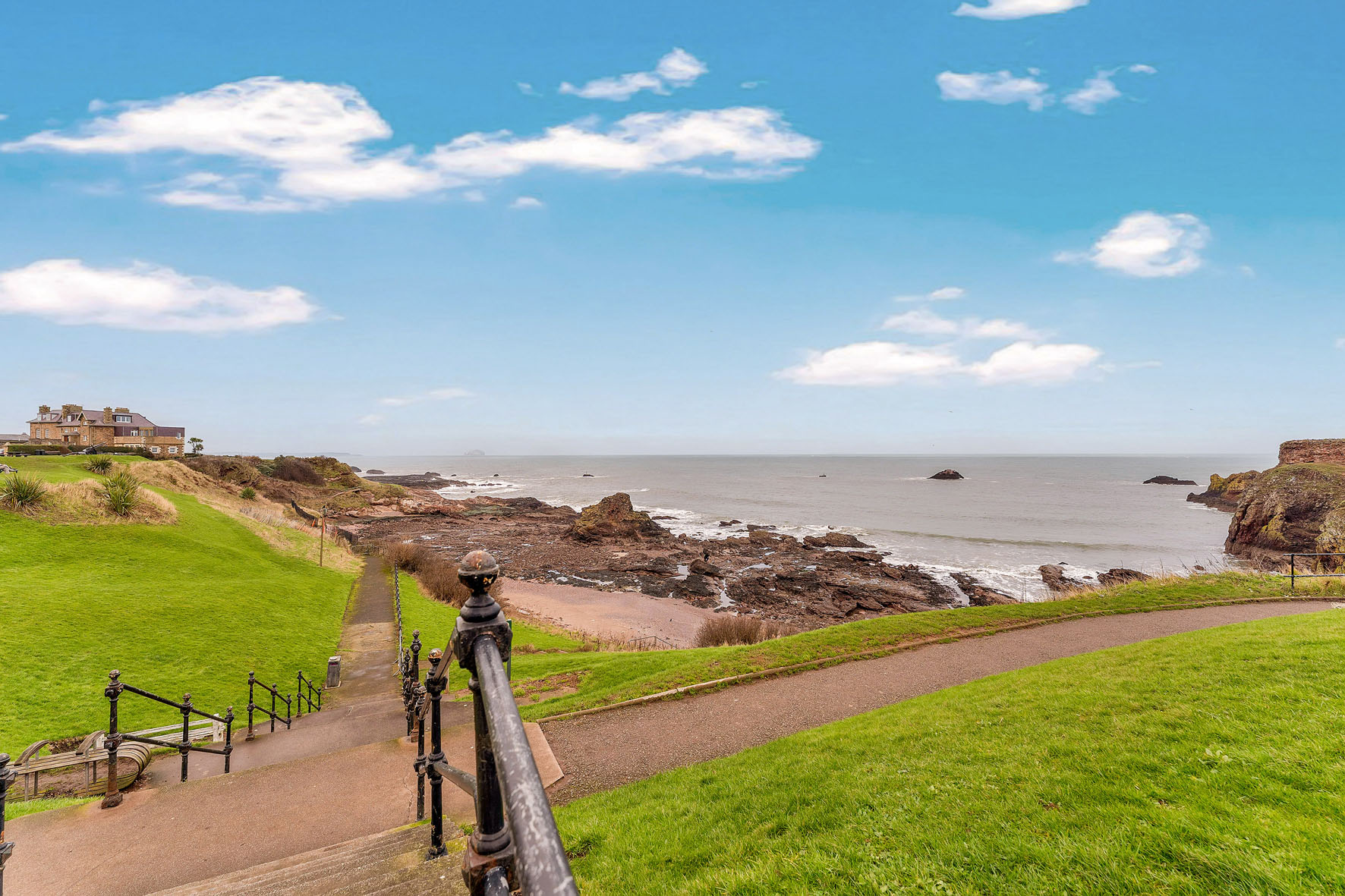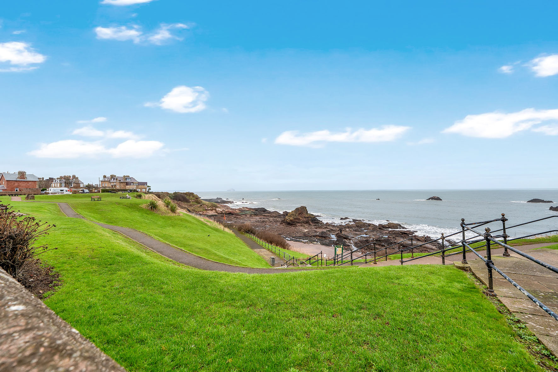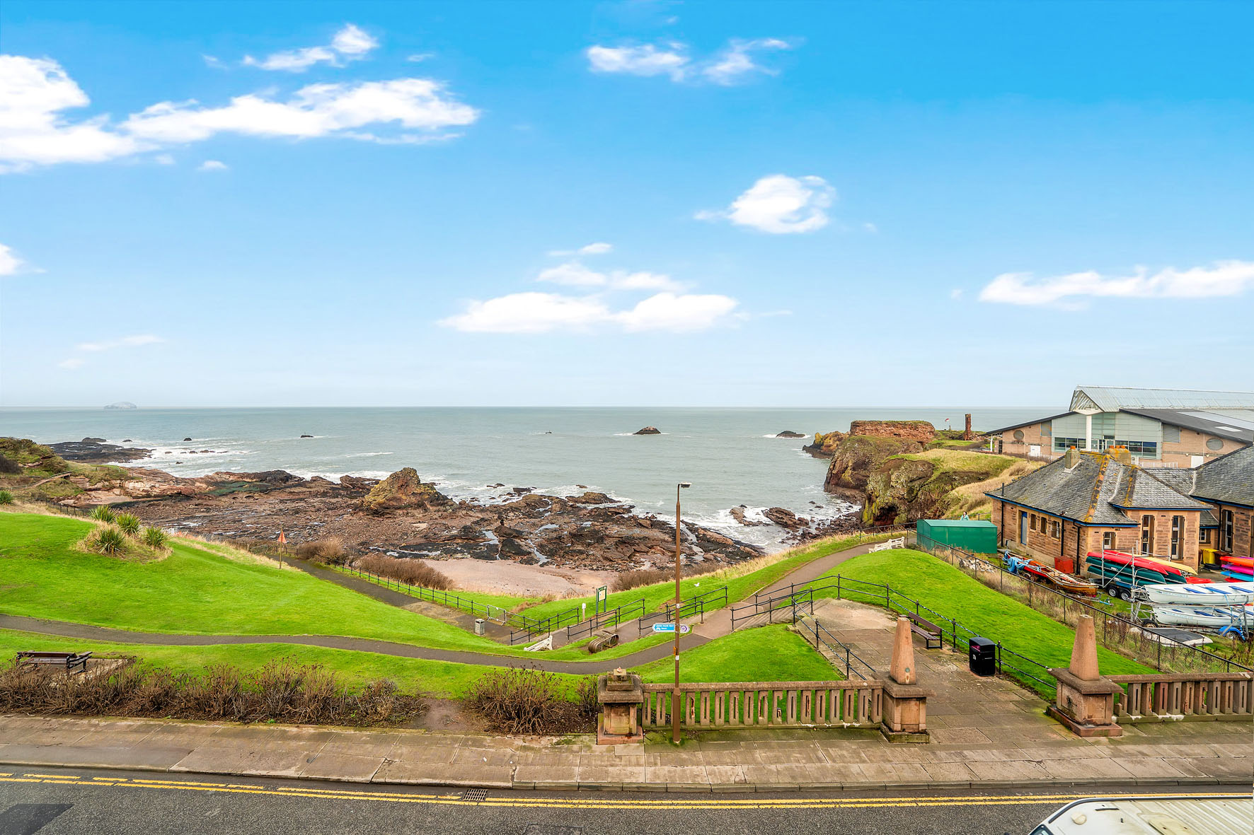 Enjoying an elevated top-floor position within a traditional stone-built terrace, this well-presented two-bedroom flat on the seafront of the sought-after coastal town of Dunbar offers bright, airy living spaces, a unique configuration, and commanding sea views.