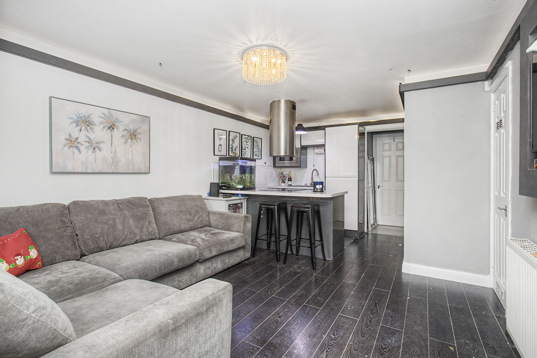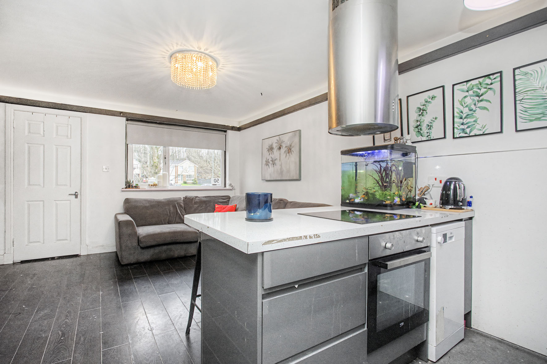 The home features a south-facing open-plan kitchen and living room with contemporary finishes and a sociable breakfasting island, ideal for everyday living.