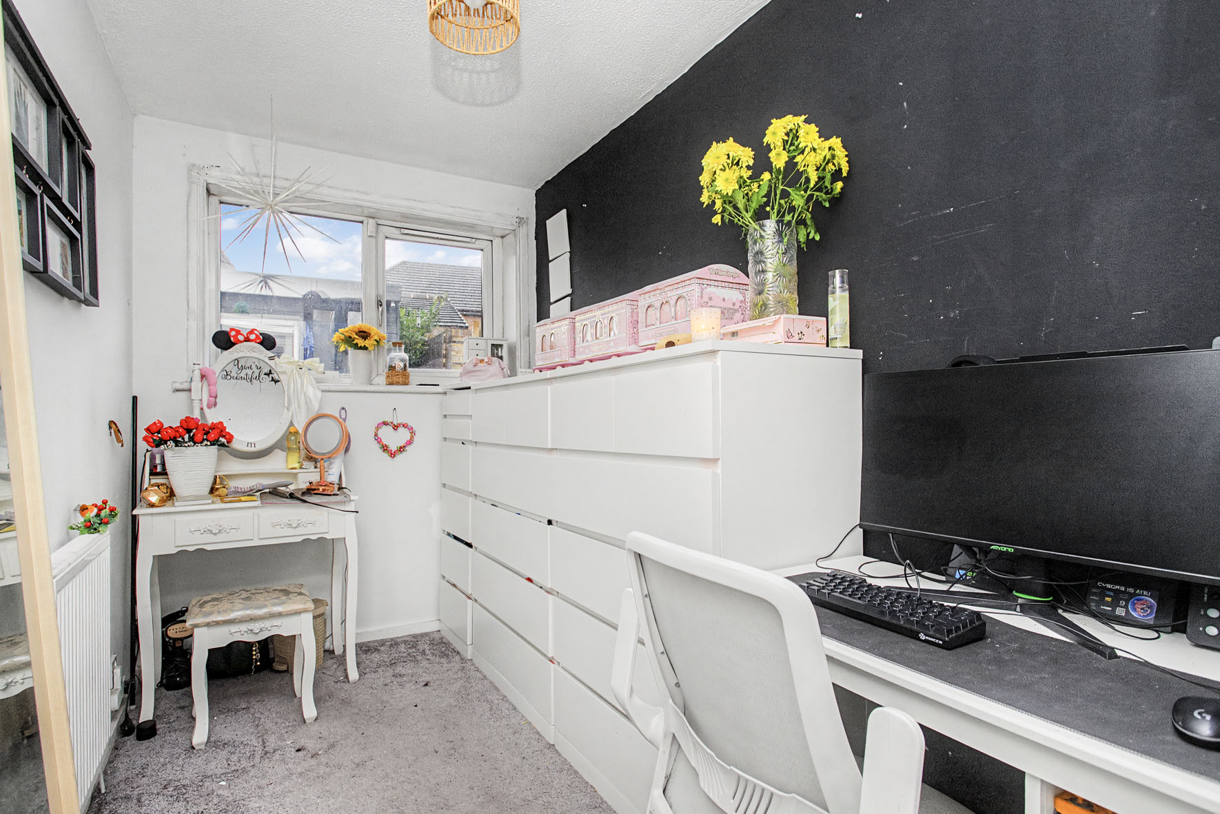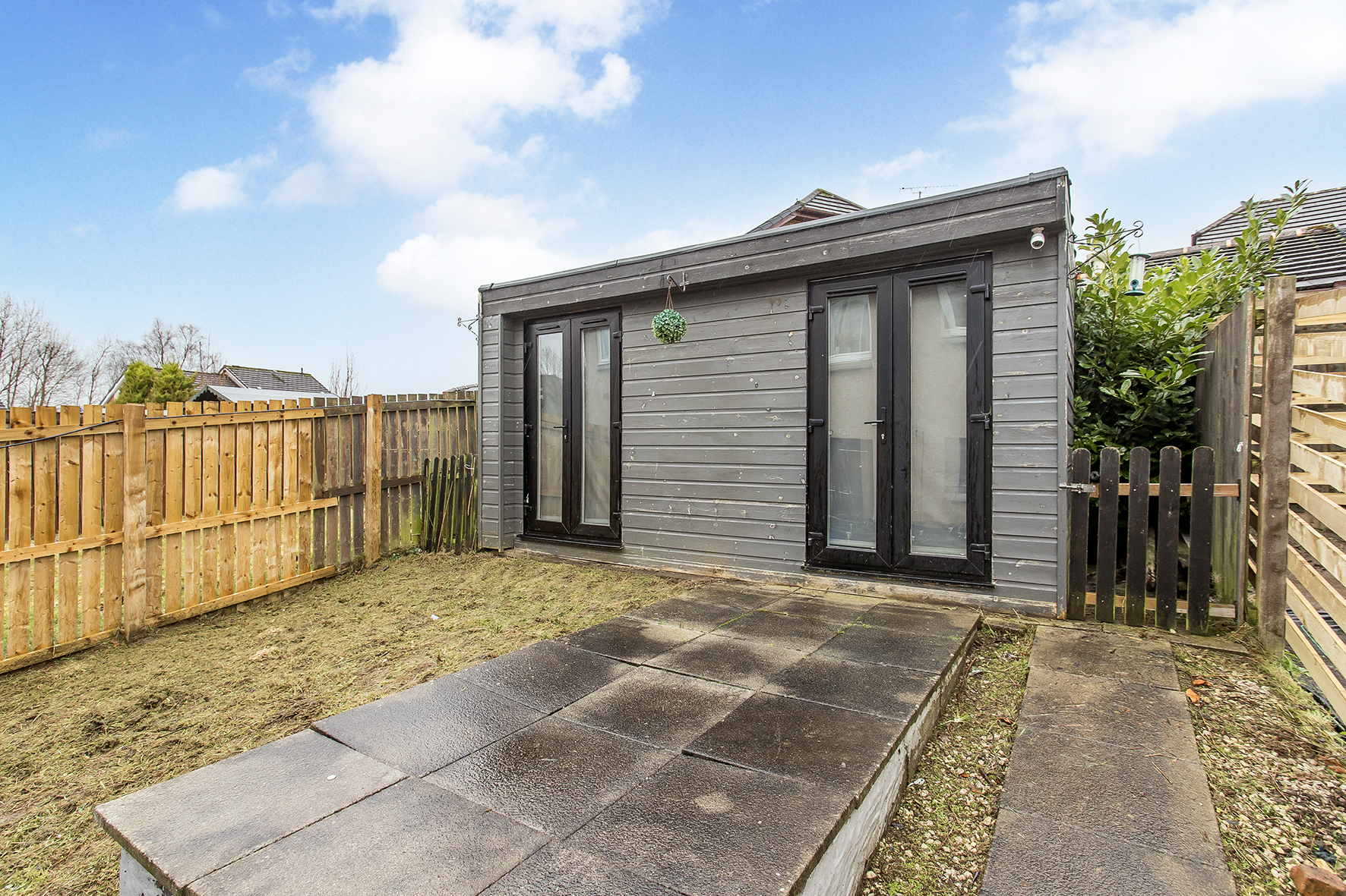 Outside, the enclosed garden includes a versatile garden room, perfect as a home office or hobby space, while a front drive provides off-street parking.