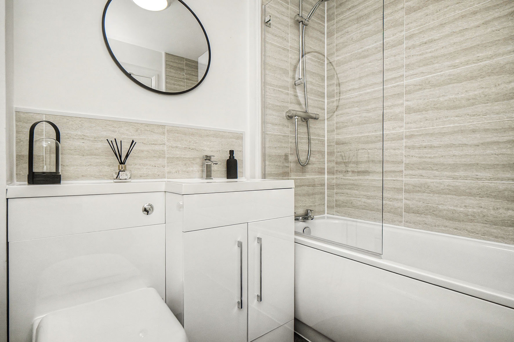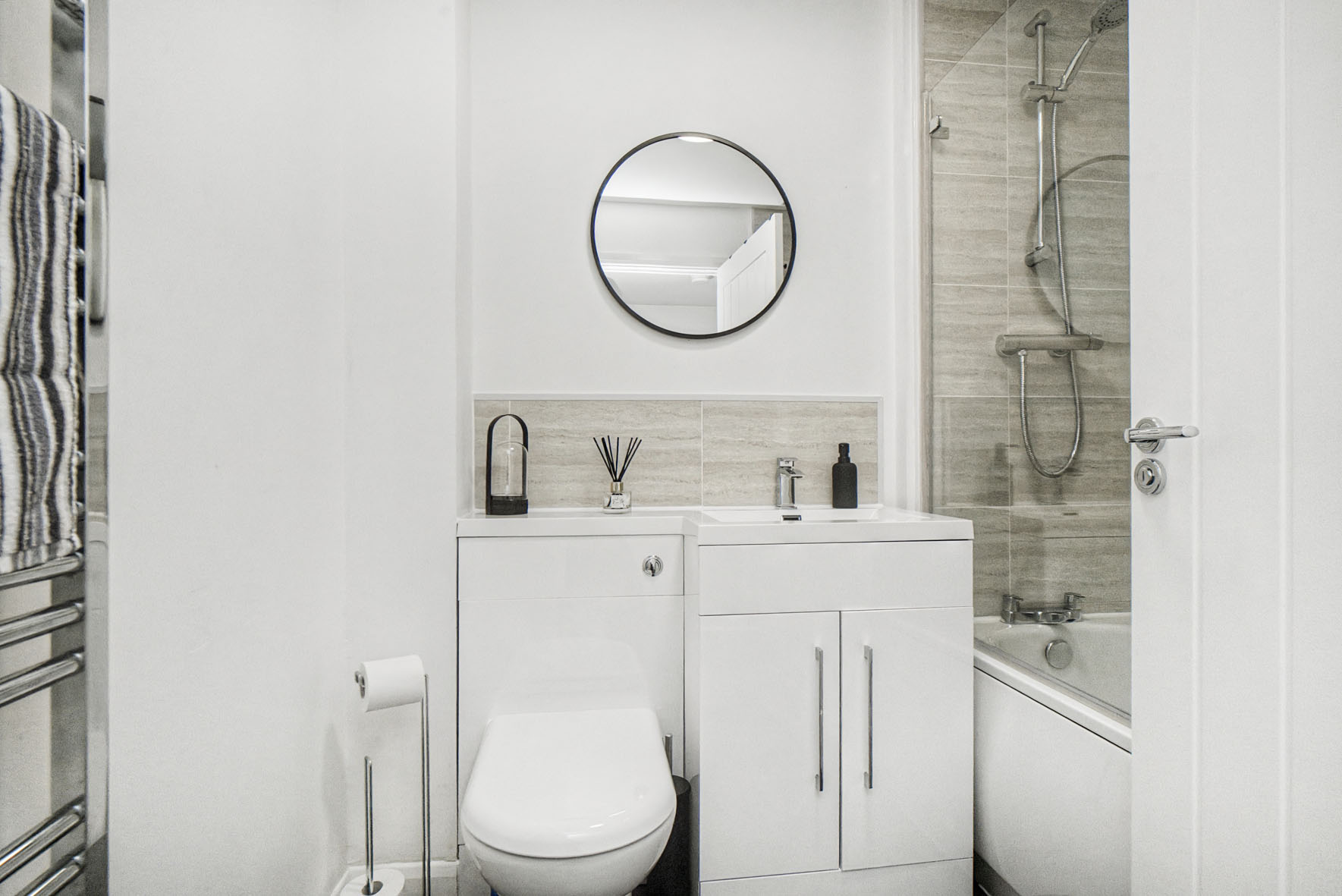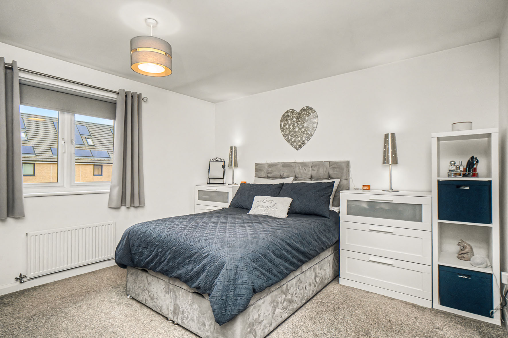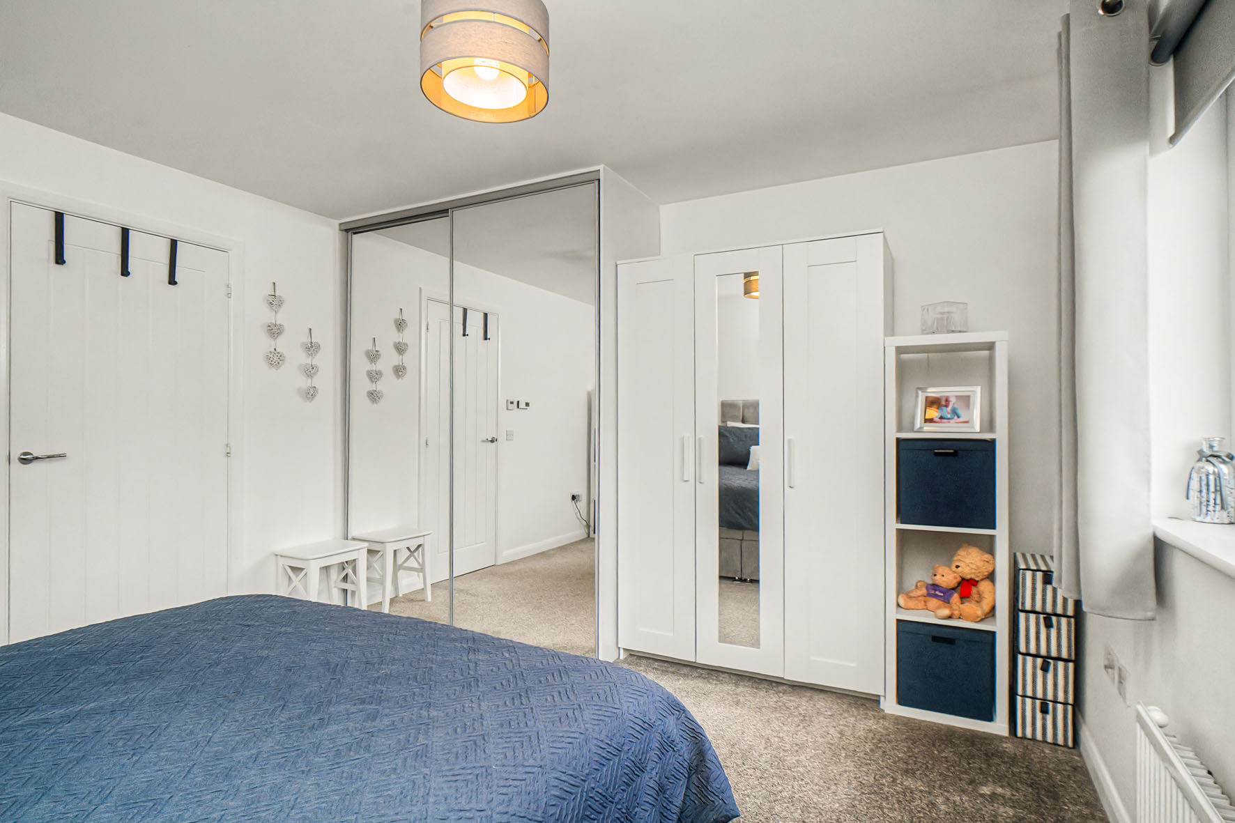 Upstairs leads to the two double bedrooms, both of which maintain the blank canvas while adding soft carpets for maximum comfort. Both rooms have built-in wardrobes as well, ensuring ample clothes storage.