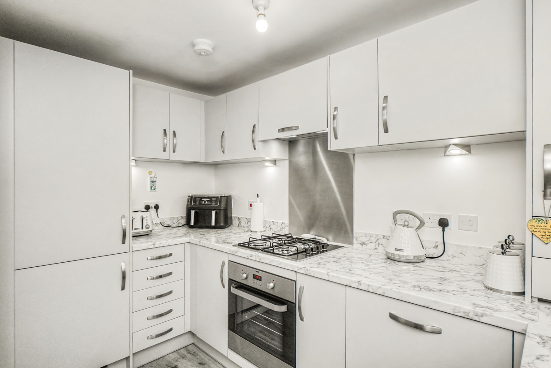 Extras: all fitted floor and window coverings, light fittings, integrated appliances (oven, gas hob, concealed extractor, fridge/freezer, dishwasher, and washing machine) to be included in the sale.