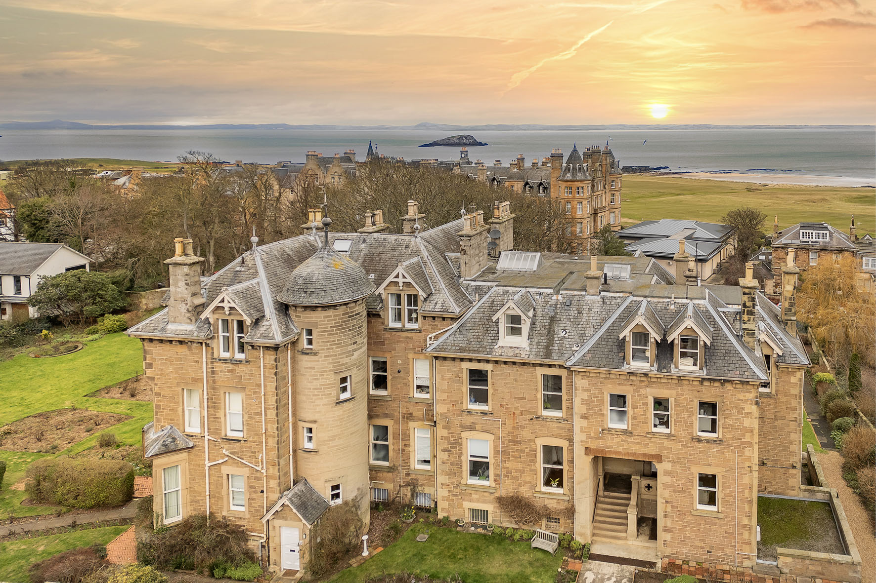 This exceptional home is part of an imposing late-nineteenth century (B-listed) Hyndford House villa, set within the North Berwick conservation area, just a short walk from the coastal town’s spectacular beaches, as well as its own unique tunnel access to the Marina Hotel with a sports club, spa, swimming pool, and a cosy pub with sea views.