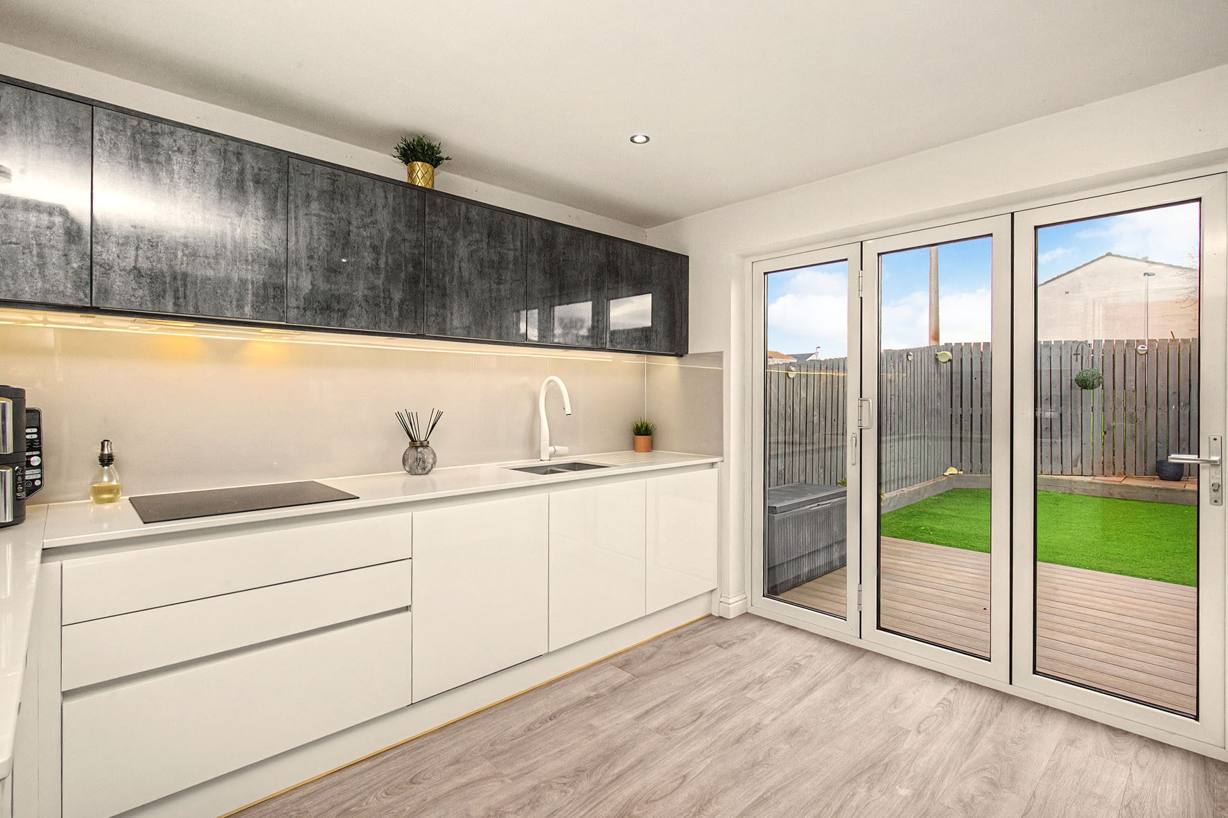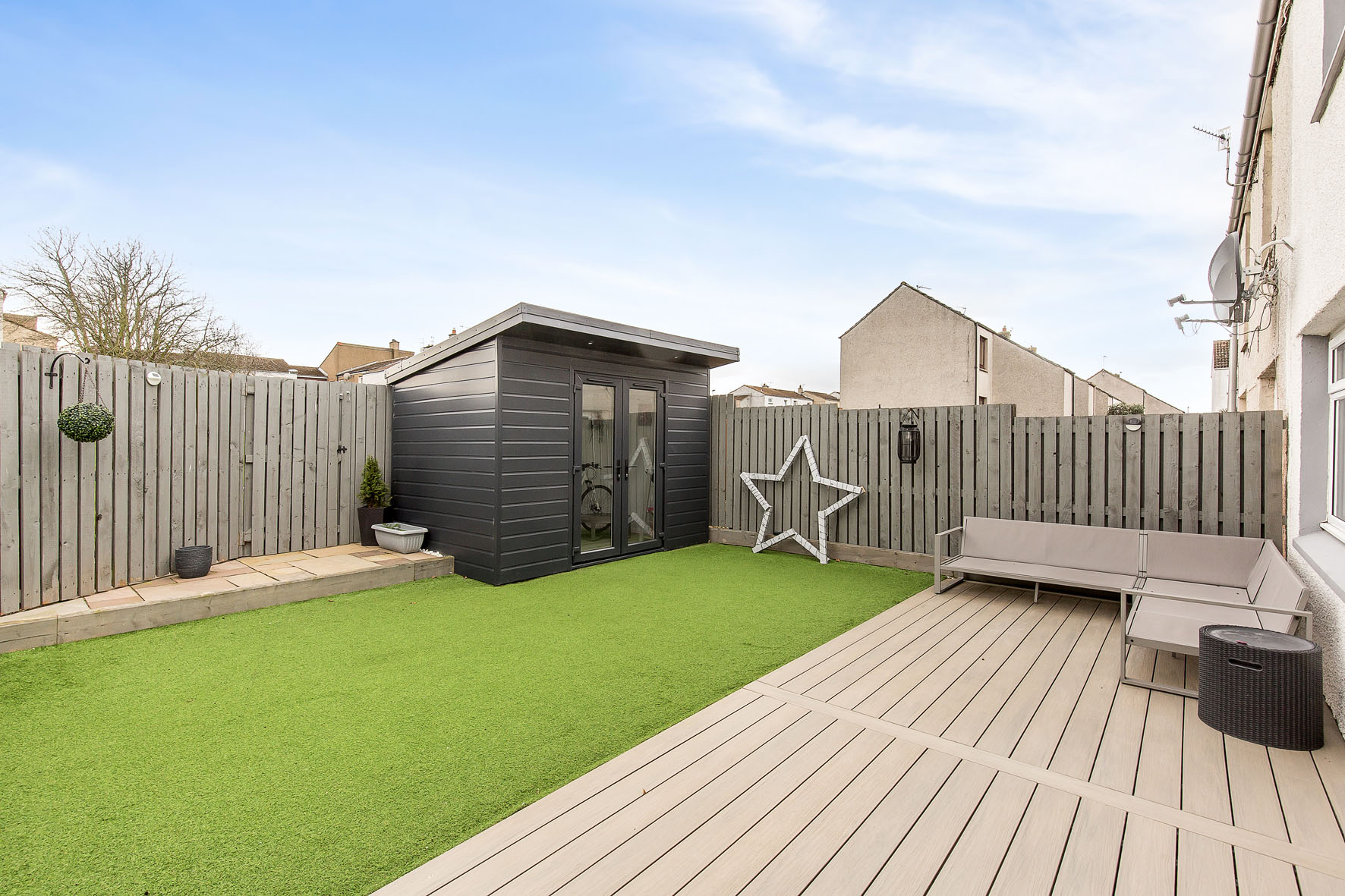 Externally, the fully enclosed rear garden has been landscaped for easy maintenance, featuring a generous decked terrace and an artificial lawn—ideal for safe family recreation and those with busy lifestyles.