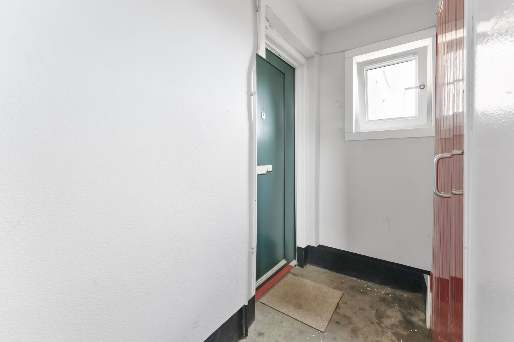 It is also an appealing option as a starter home or rental investment, and is move-in ready, featuring a living room with access to the balcony, a tasteful modern kitchen with appliances and a breakfast bar, one double bedroom equipped with built-in storage, additional deep storage in the hall, and a bathroom with a shower-over-bath.