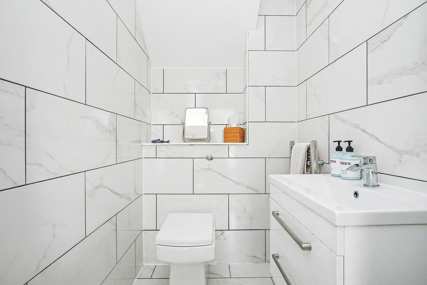 Completing the ground floor is a convenient WC finished with stylish large-format tiling.