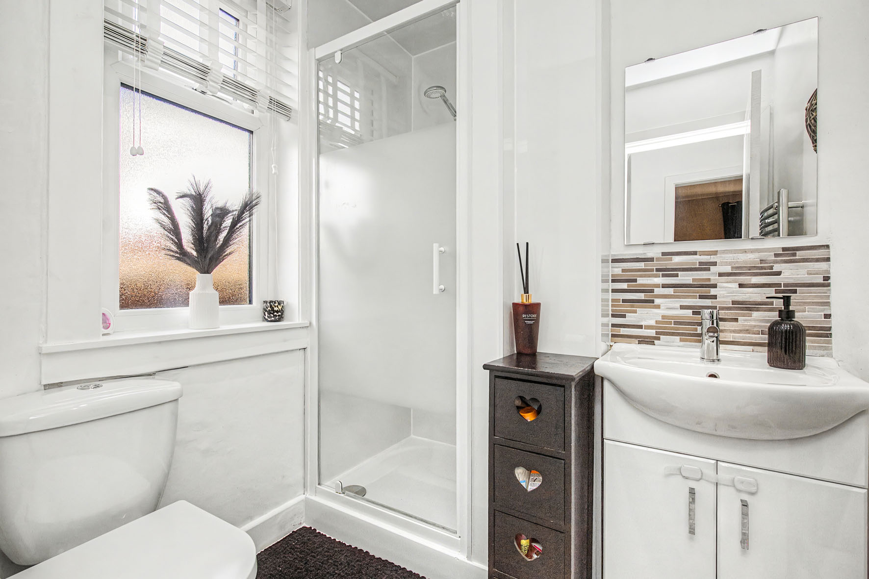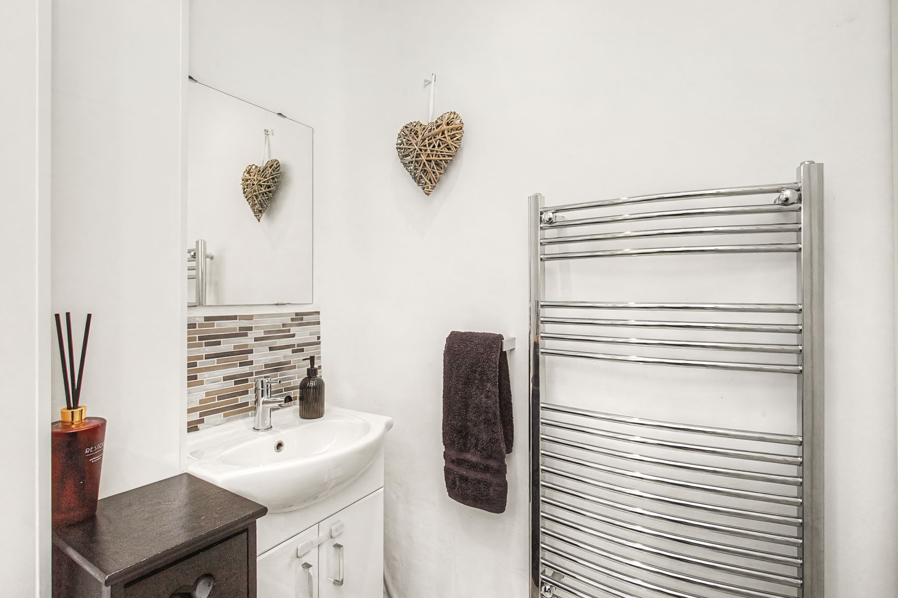 The two double bedrooms on offer enjoy a quiet garden-facing position, with calming subtle décor, soft carpeting, and fitted storage. Bedroom 1 is reached from the hall and comes with fitted wardrobes. Bedroom 2 is reached from the reception room and is a versatile space, also ideal for those seeking space to work from home. Completing the accommodation is a bright modern shower room with a heated towel rail and storage for toiletries. The property is kept warm and efficient via gas central heating and double glazing throughout.