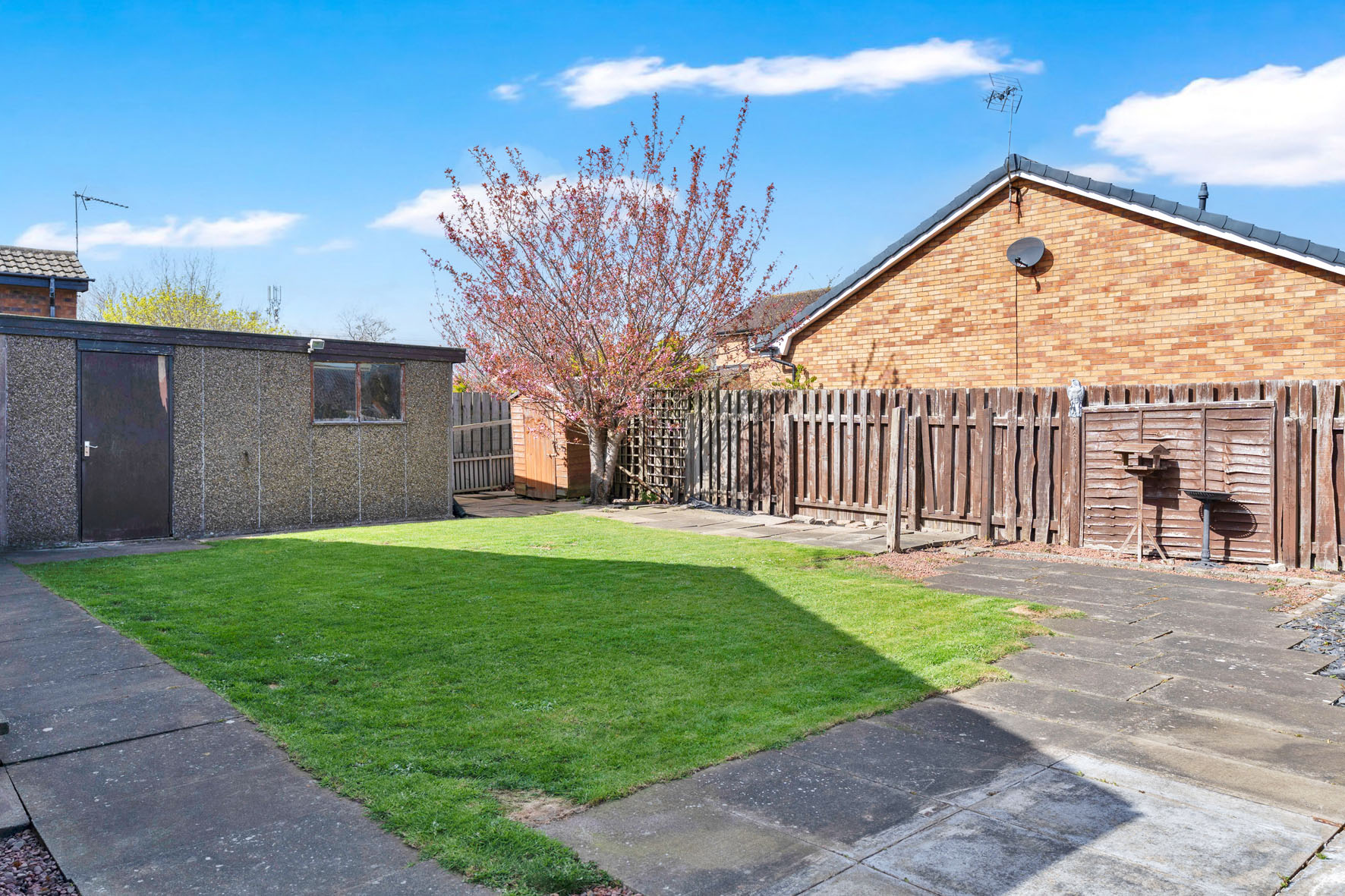Outside, the property enjoys neatly maintained gardens to the front and rear. The enclosed rear garden combines lawn and patio areas for easy outdoor living, whilst a detached garage and private driveway provide excellent parking and storage.